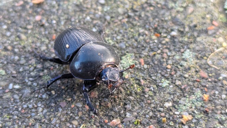 Uns begrüßte im Dezember ein ungewöhnlicher Anblick als ein Mistkäfer vor unsere Winterstiefel krabbelte